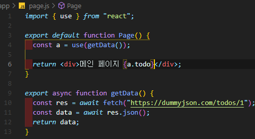 위와 같이 함수를 선언한 뒤에, use() 안에 넣어주기만 하면 된다. 추가적으로, fetch 구문의 URL 뒤에 { cache: '' }를 넣어줄 수 있는데, 안에 무엇이 들어가냐에 따라 기존의 getServerSideProps, getStaticProps와 유사한 기능을 할 수 있다.